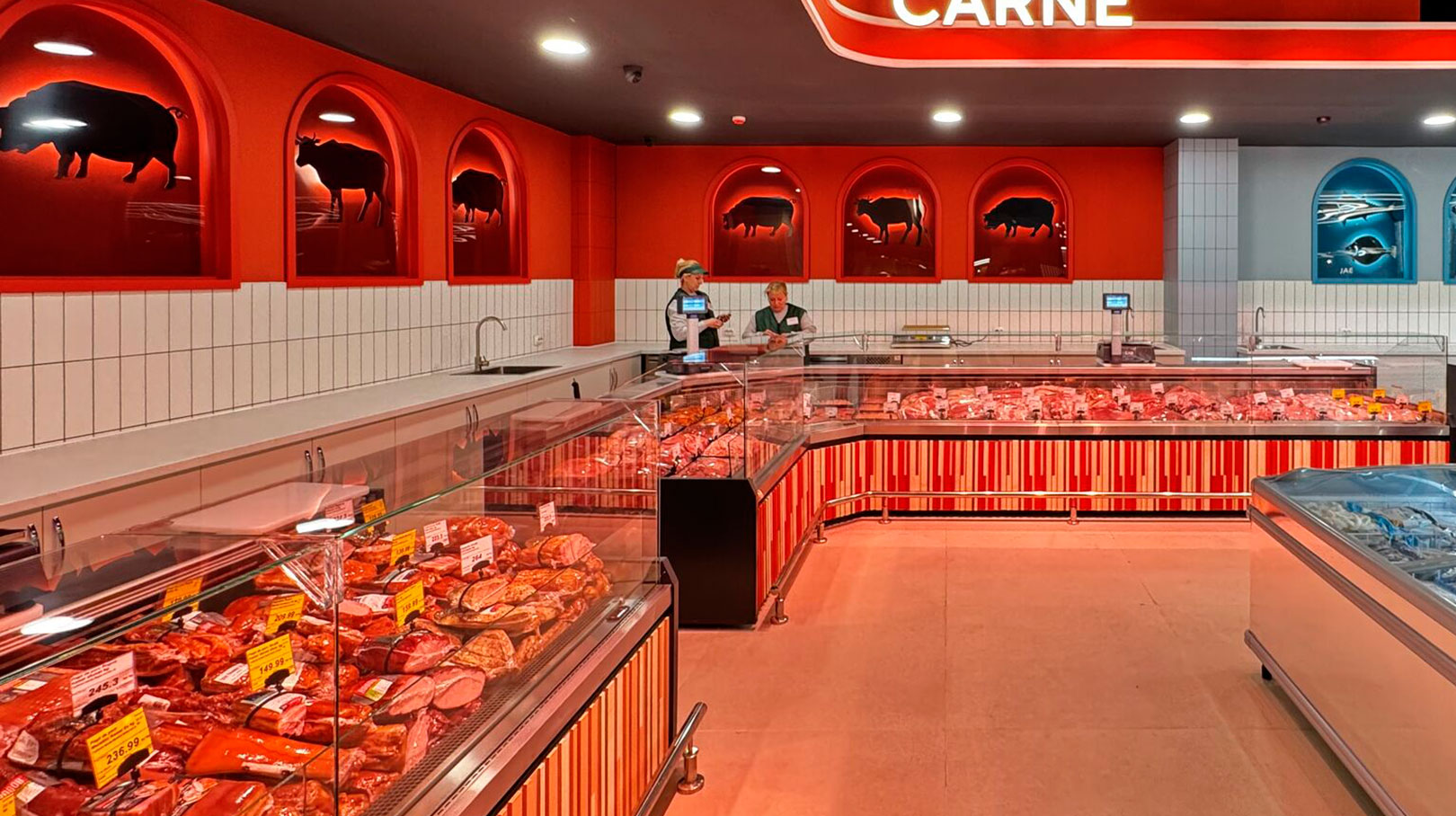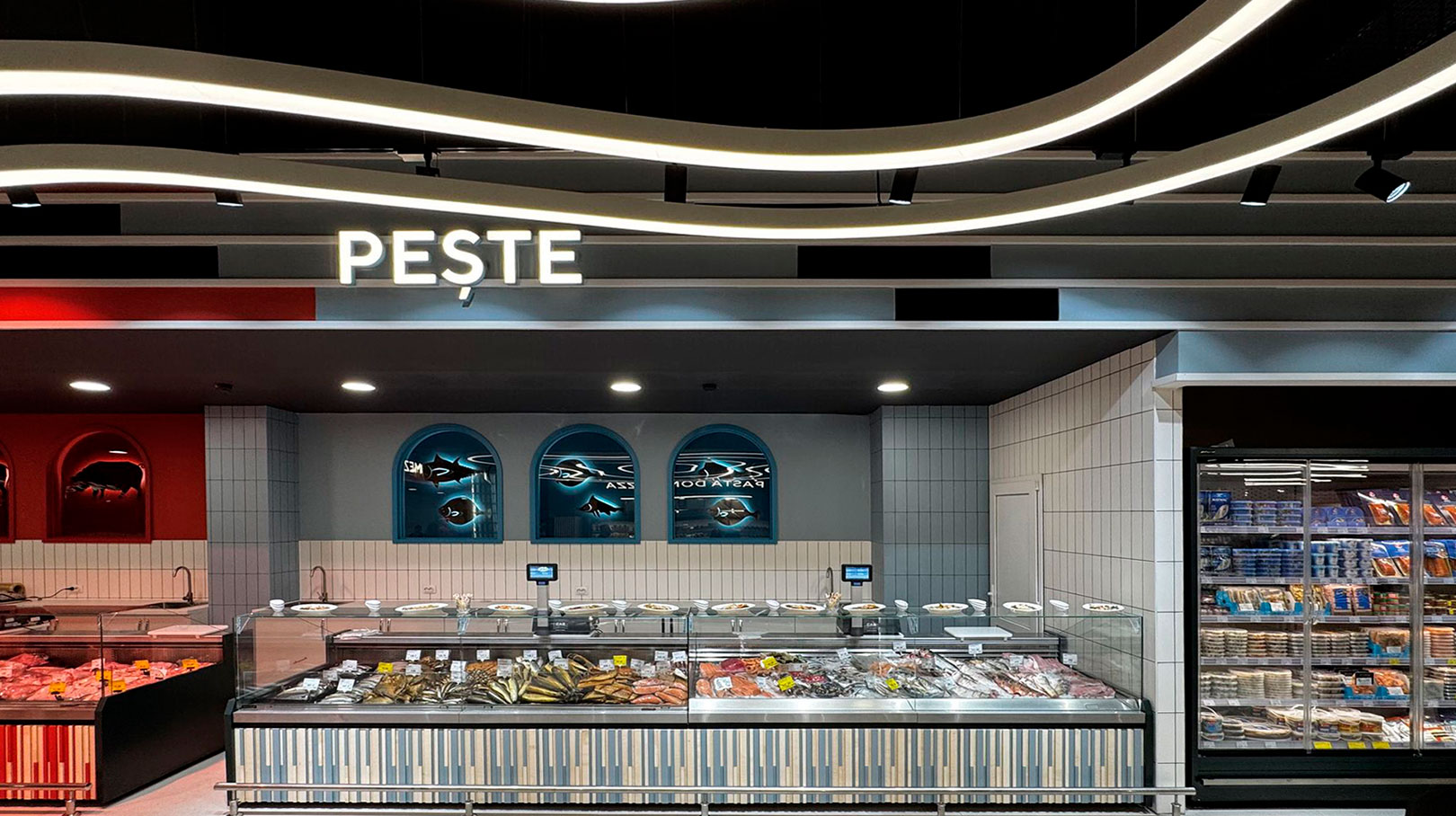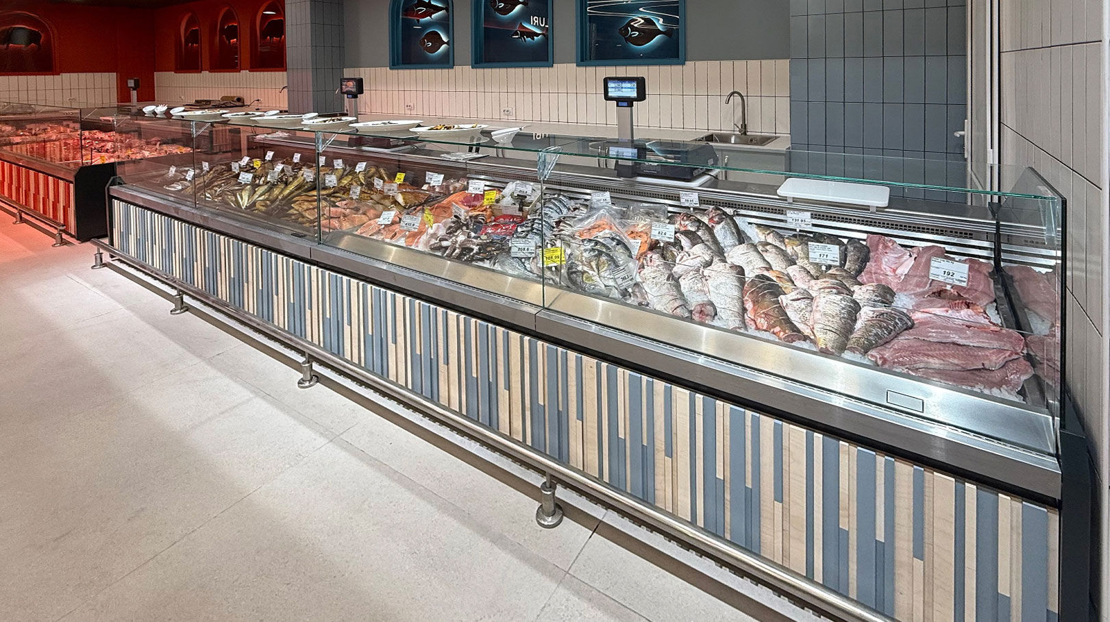 - Specialized counters for fish, preserved seafood and seafood sales
