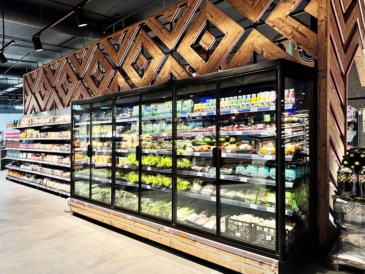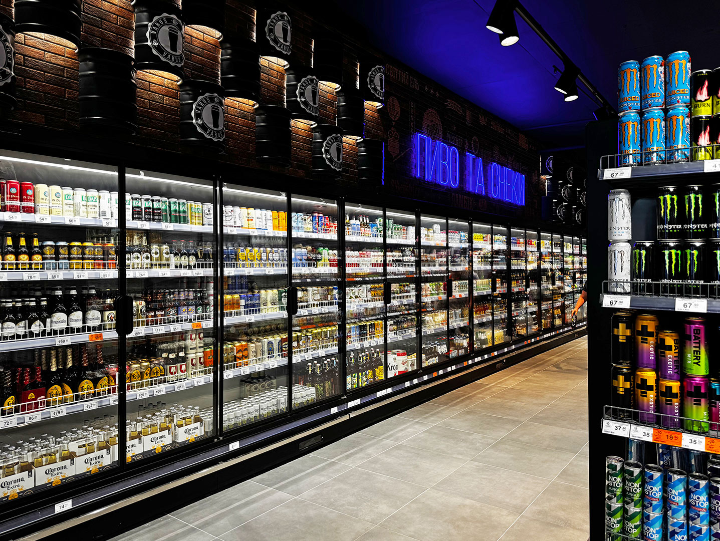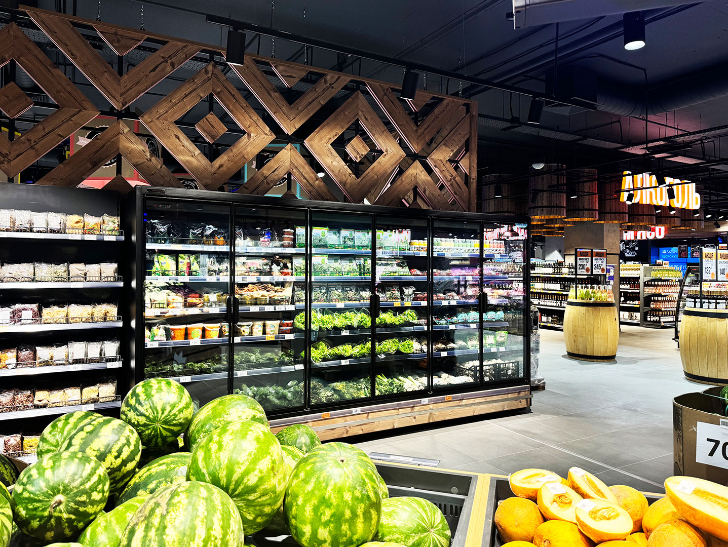 Мережа супермаркетів Varus відкрила новий магазин в Одесі, що відрізняється увагою до кожної деталі: просторі ряди, зручна навігація і сучасна атмосфера. Всі ці рішення органічно вбудовані в інтер’єр, створюючи відчуття легкості та сучасного стилю. Проект демонструє, як обладнання «Hitline» допомагає раціонально використовувати простір, покращувати презентацію продукції та робити покупки комфортними для кожного відвідувача. Підібране та встановлене холодильне обладнання враховує специфіку кожної категорії продуктів.